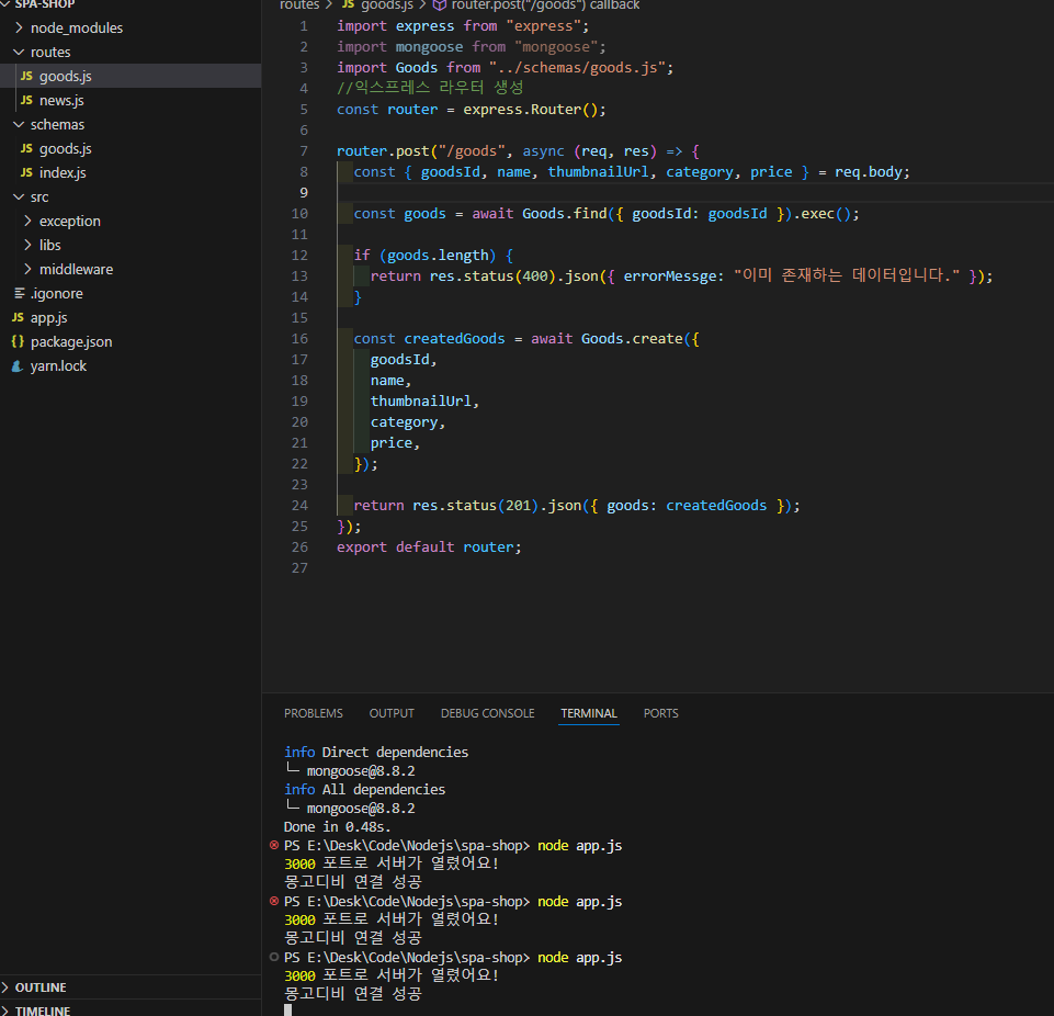 mongoose 는 MongoDB에 데이터를 쉽게 읽고 쓰게 해주는 JavaScript 라이브러리 입니다.