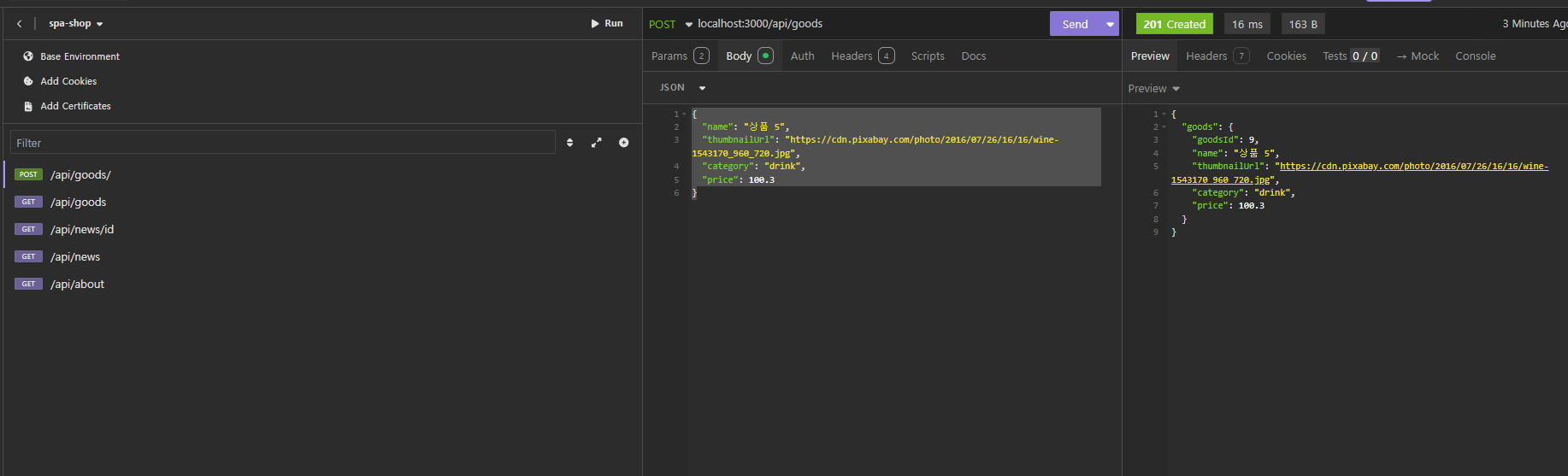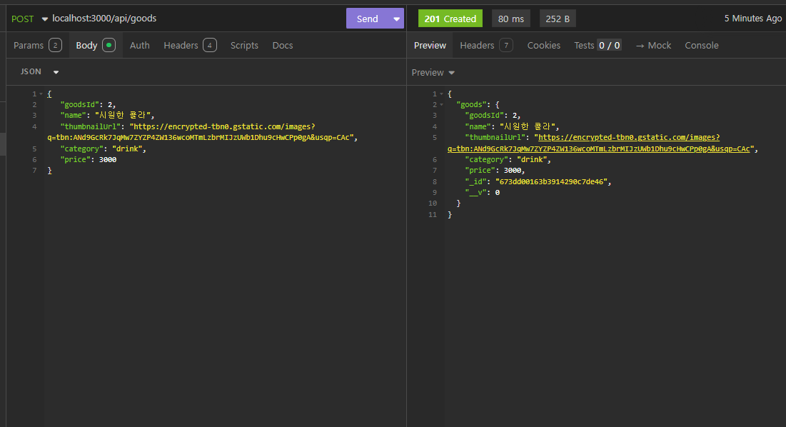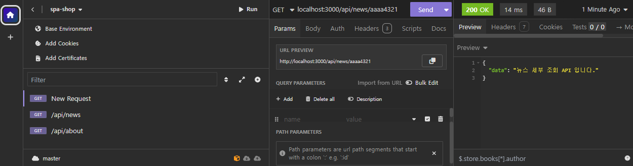 Insomnia를 통해 실시간 결과값 또는 상태를 확인할 수 잇다.