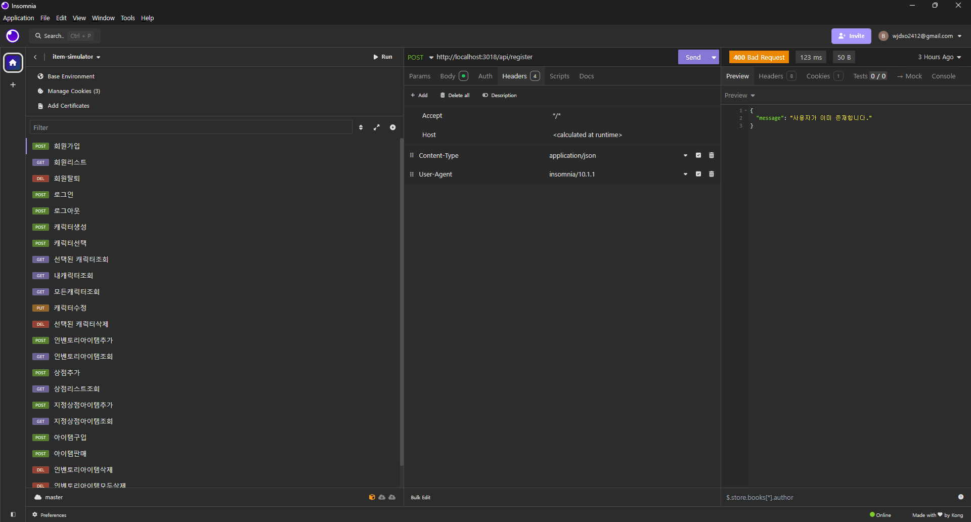 지금 작업중인건 item-simulator -002버전인데