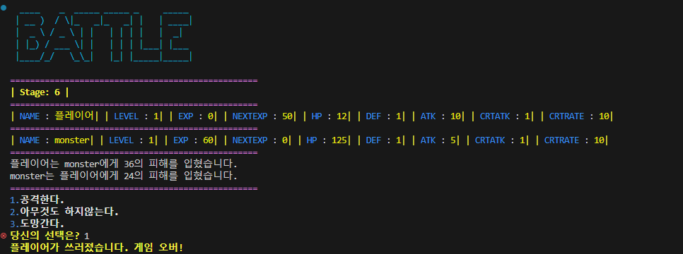기본적인 공격과 도망 기능 구현을 우선하여