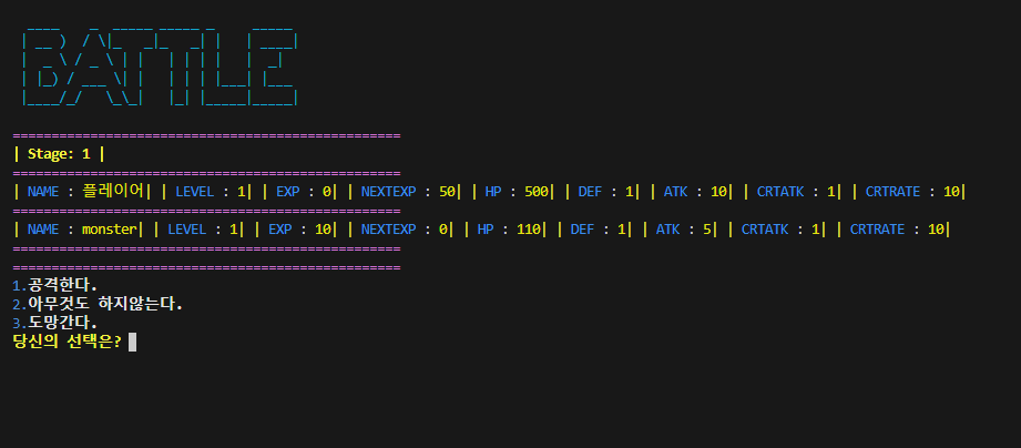 오늘은 우선 CLI 게임 로그라이크 만들기 본격적으로 들어가는 하루가 되었다.